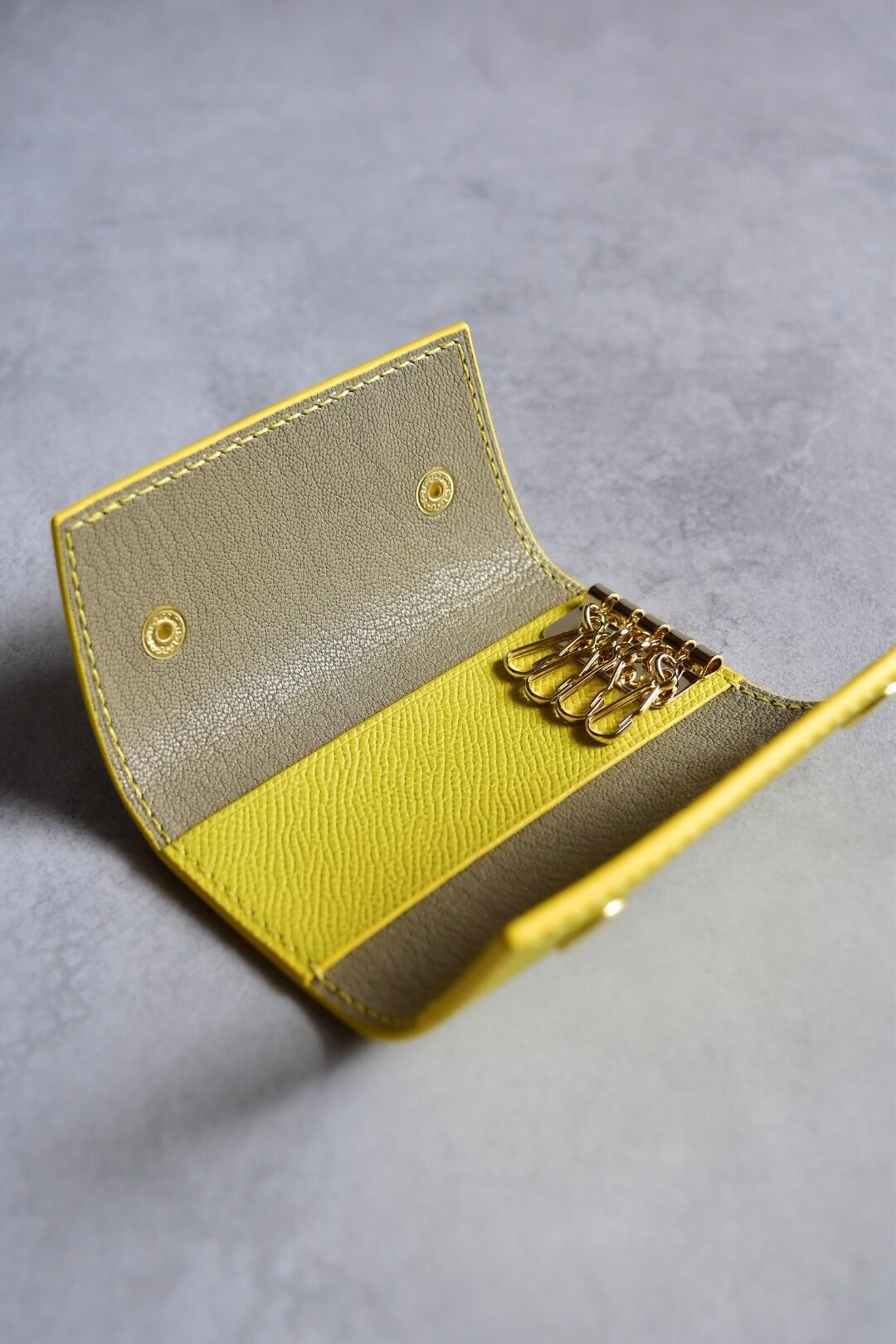 キーケース イエロー 3つ折り 4連キーリング
