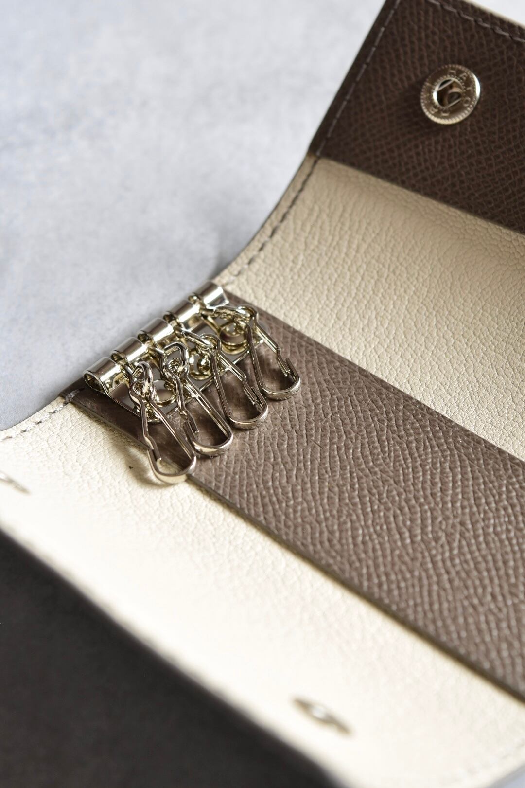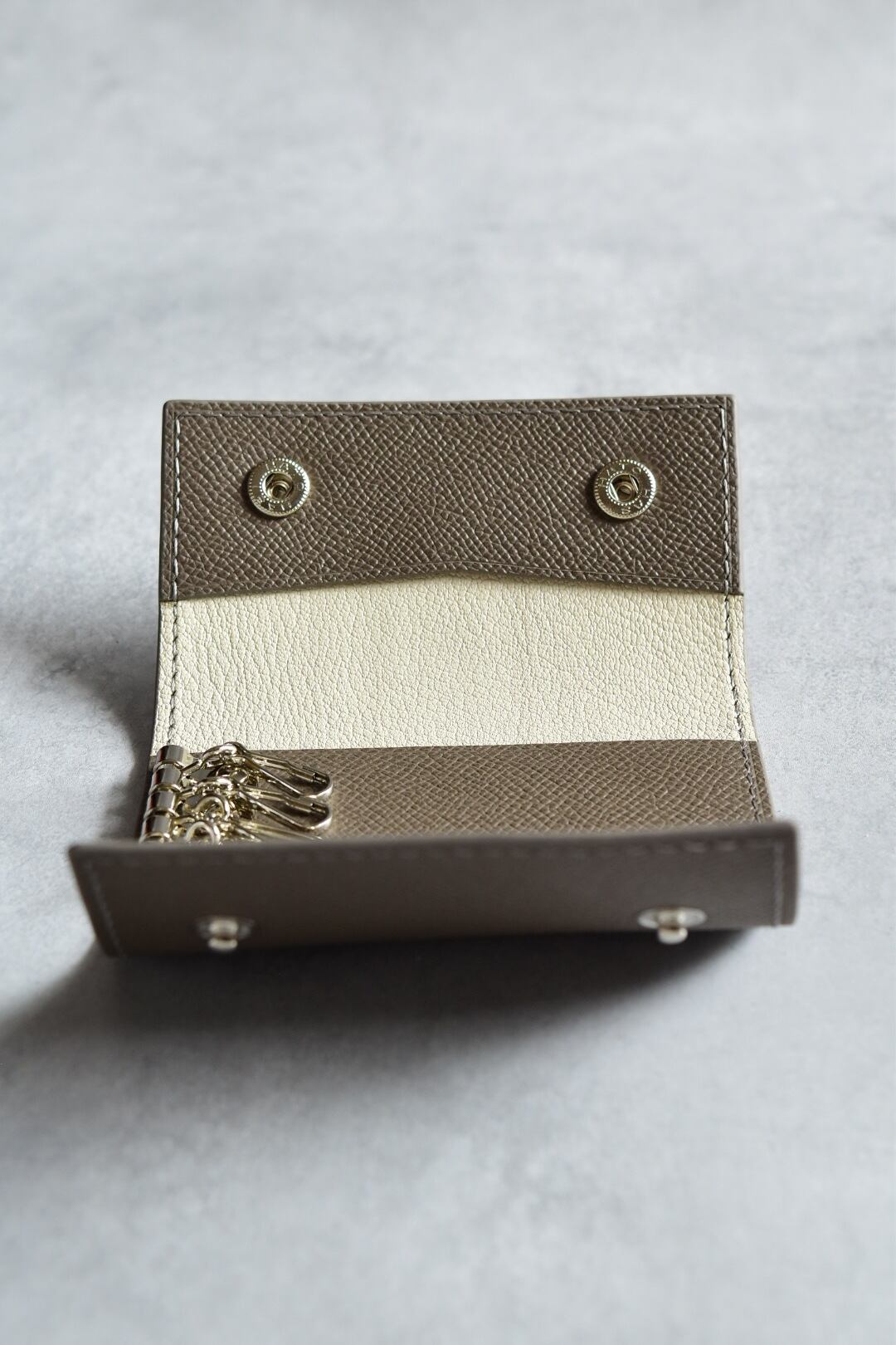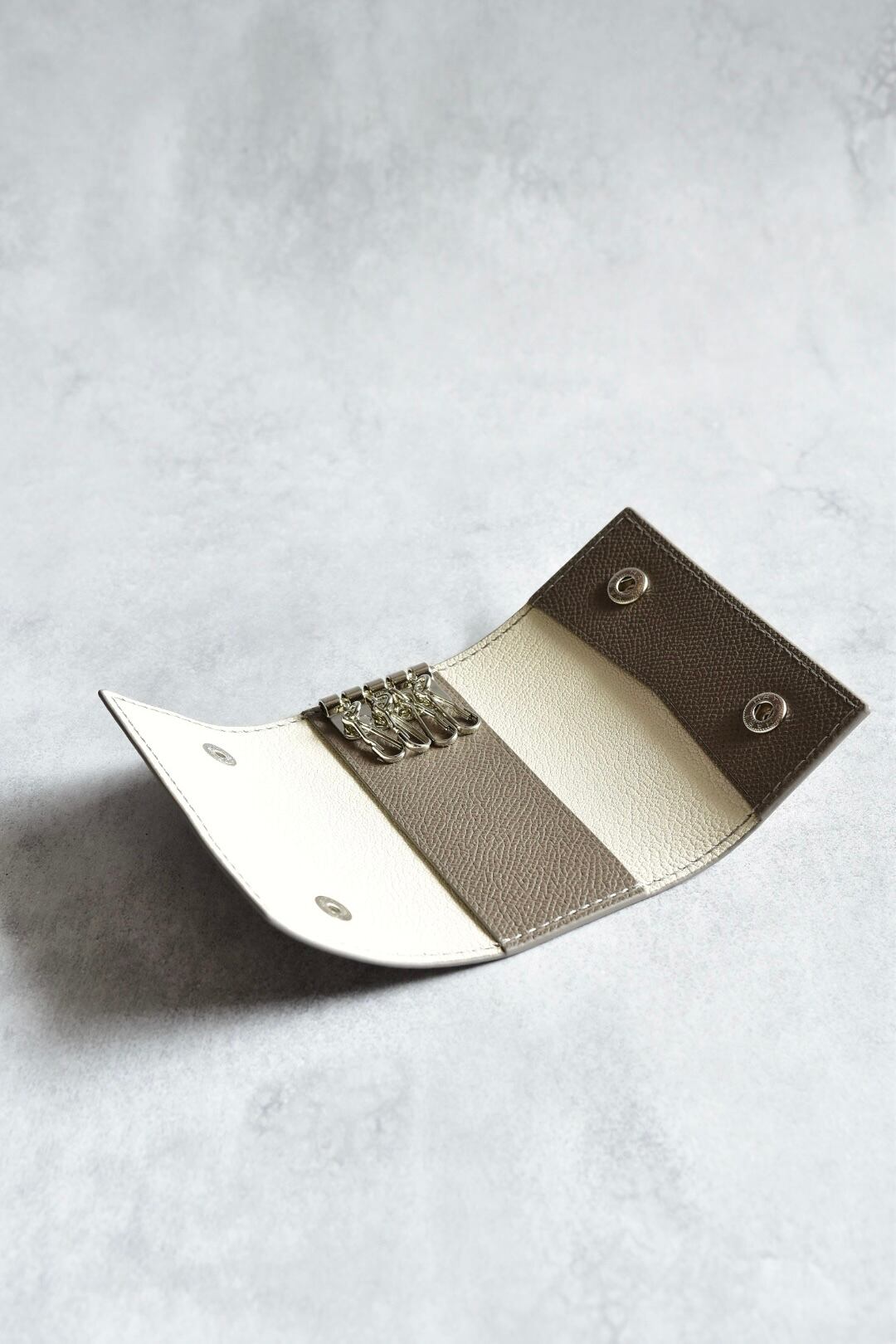 キーケース グレー 3つ折り 4連キーリング