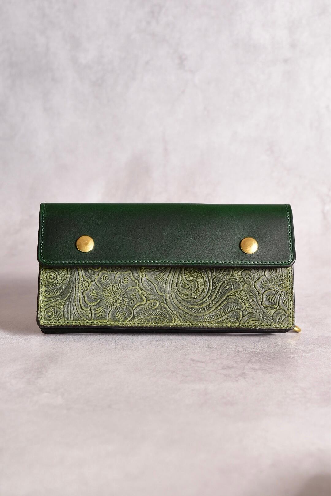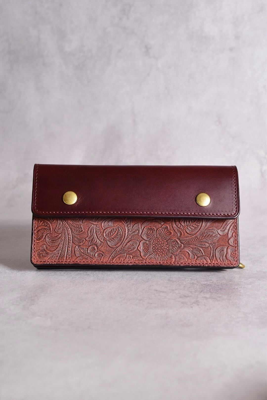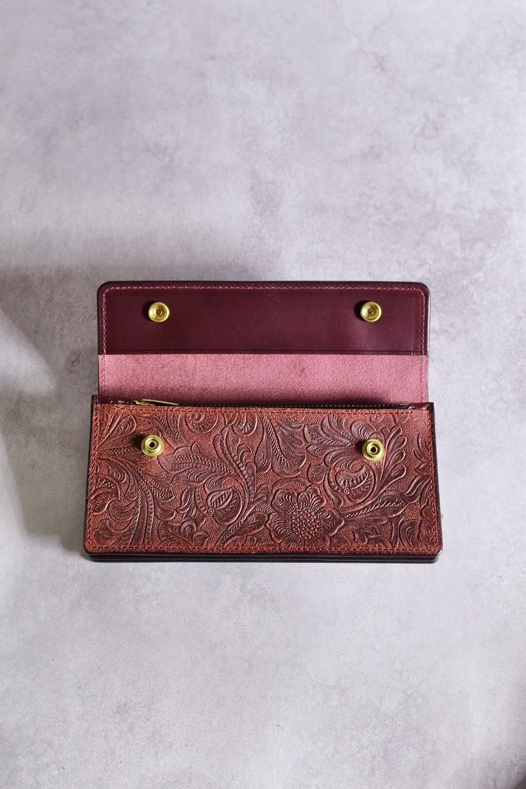型押しレザーも、イタリアンレザーで、USフラワーの型押しをしています。