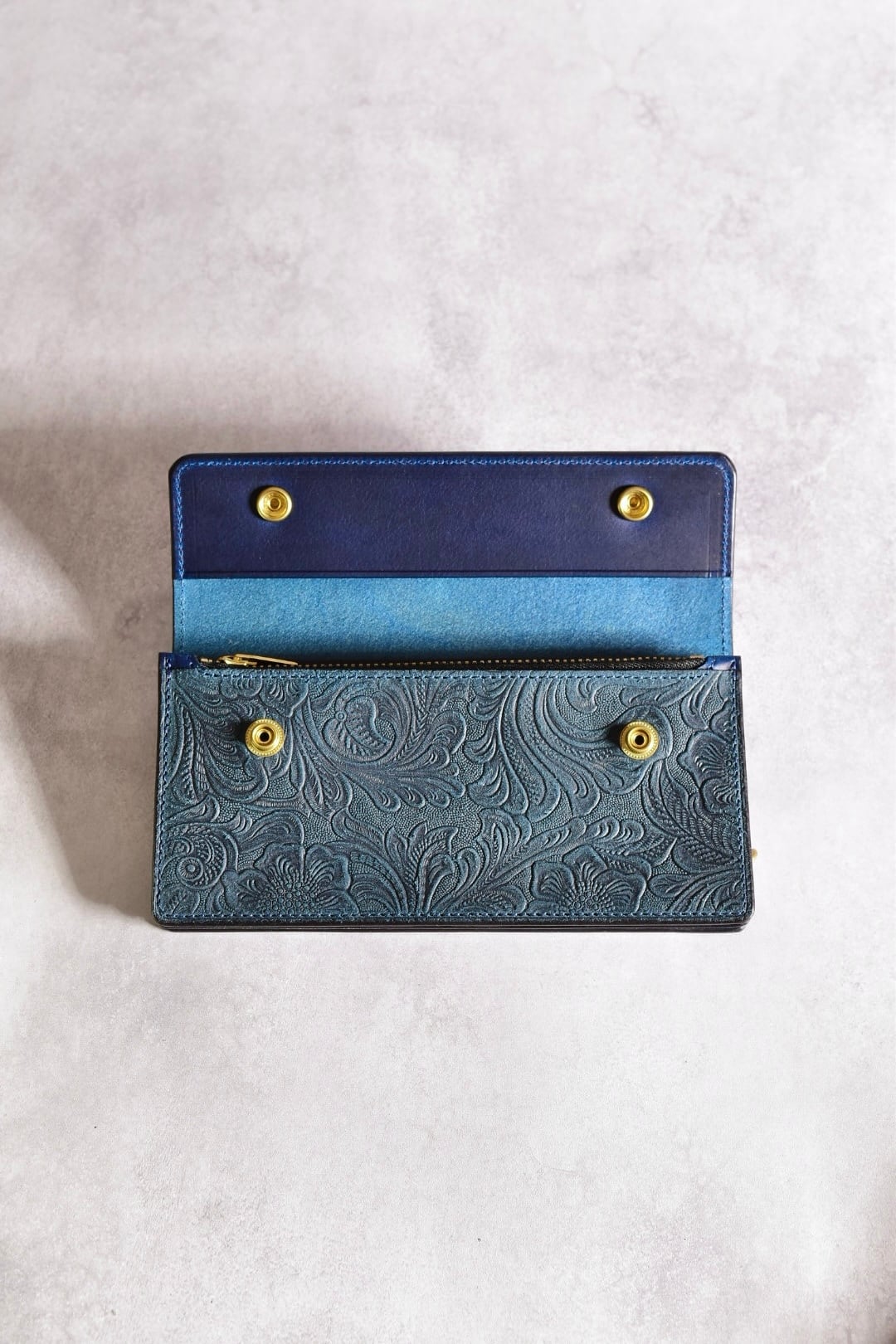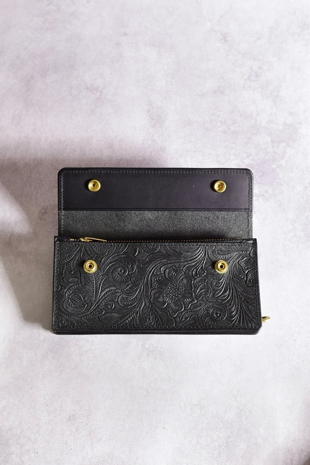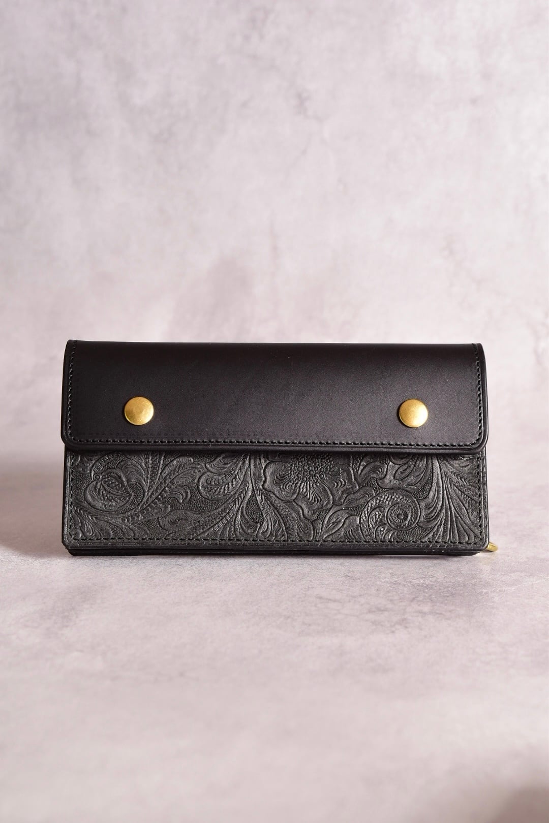 型押しレザーも、イタリアンレザーで、USフラワーの型押しをしています。