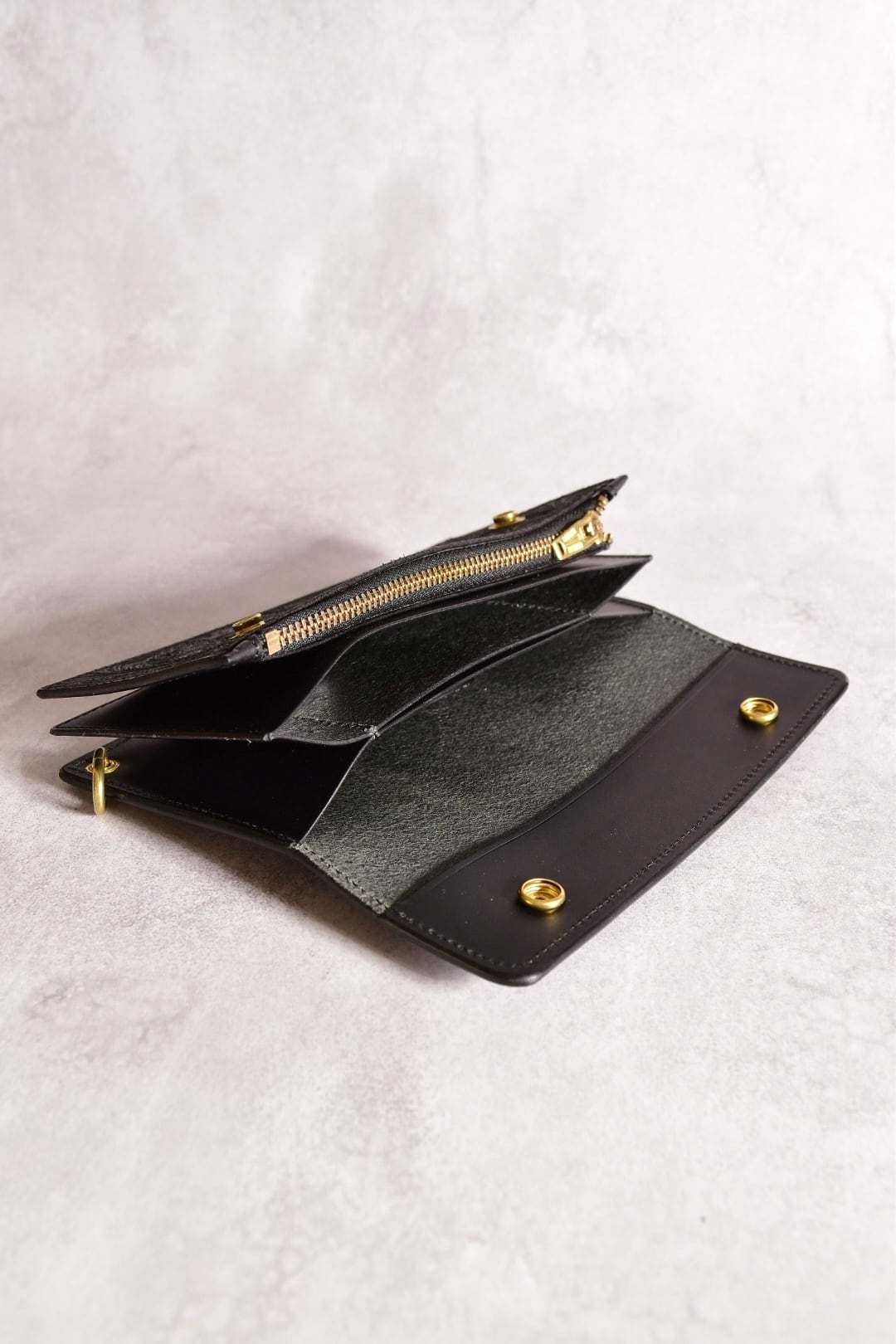 コインケースは、本来のトラッカーウォレットにはマチが付いておらず、使いずらい為、マチを付け、コインを取りやすい仕様に致しました。